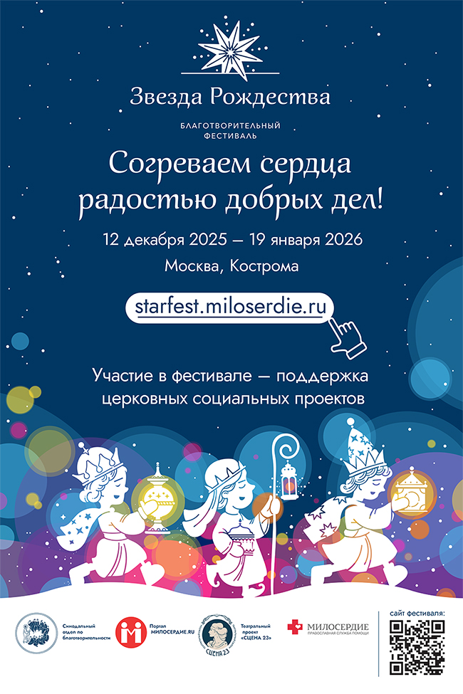 Фестиваль организованный православным порталом Милосердие.ru при поддержке Синодального отдела по церковной благотворительности и социальному служению, пройдет в Москве, Рязани и Костроме по благословению Святейшего Патриарха Московского и всея Руси Кирилла. Все вырученные будут направлены на реализацию церковных социальных проектов. Подробнее с программой мероприятий можно ознакомиться на сайте фестиваля «Звезда Рождества».